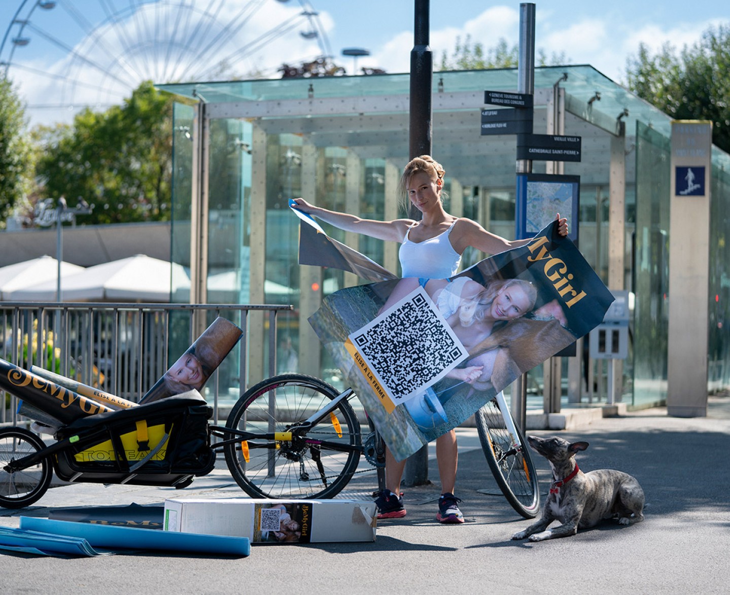 Sur l'affiche en question, une escort dans une étable en train de traire une chèvre. Cette escort indépendante, c’est Elise l’égérie du site d’escorts Bemygirl. Sur l’affiche, un QR code destiné a attiré les curieux sur la plateforme internet. Une centaine de ces placards devaient être affichés dans les sous-sols du parking du Mont-Blanc durant tout le mois de septembre, soutien l’escort. Mais au dernier moment la direction a changé d’avis.